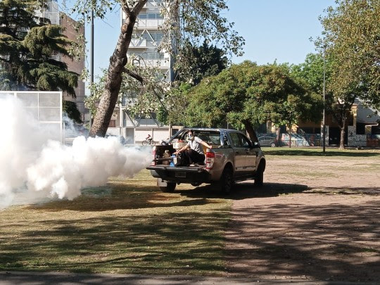 La Municipalidad de Rosario, a través de personal de la Dirección de Vectores, dependiente de la Secretaría de Ambiente y Espacio Público, realiza operativos de fumigación en parques, plazas y espacios verdes de la ciudad, con el objetivo de controlar la presencia de mosquitos.