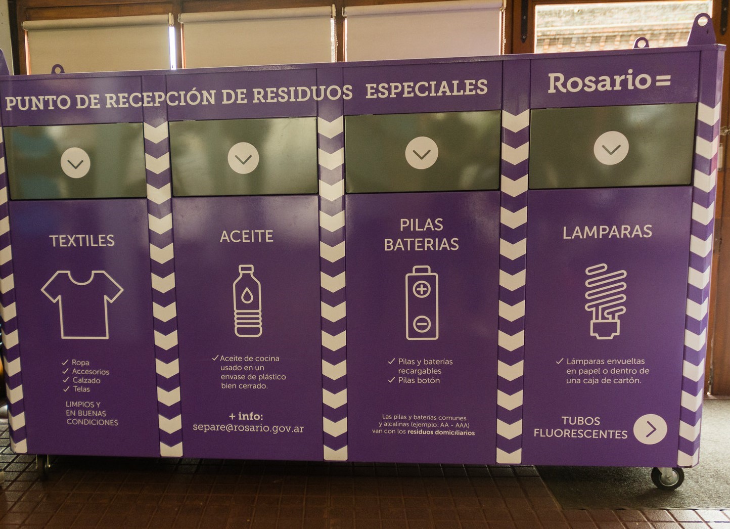 Se trata de contenedores especiales que poseen diferentes compartimentos para la recepción de residuos clasificados. Están instalados en los seis centros municipales de distrito, en la Dirección Integral de Residuos, en el Centro Ambiental de Tratamiento de Residuos, en el shopping Alto Rosario y en las cooperativas Luchadores 1 de Mayo y Reciclando Futuro.
