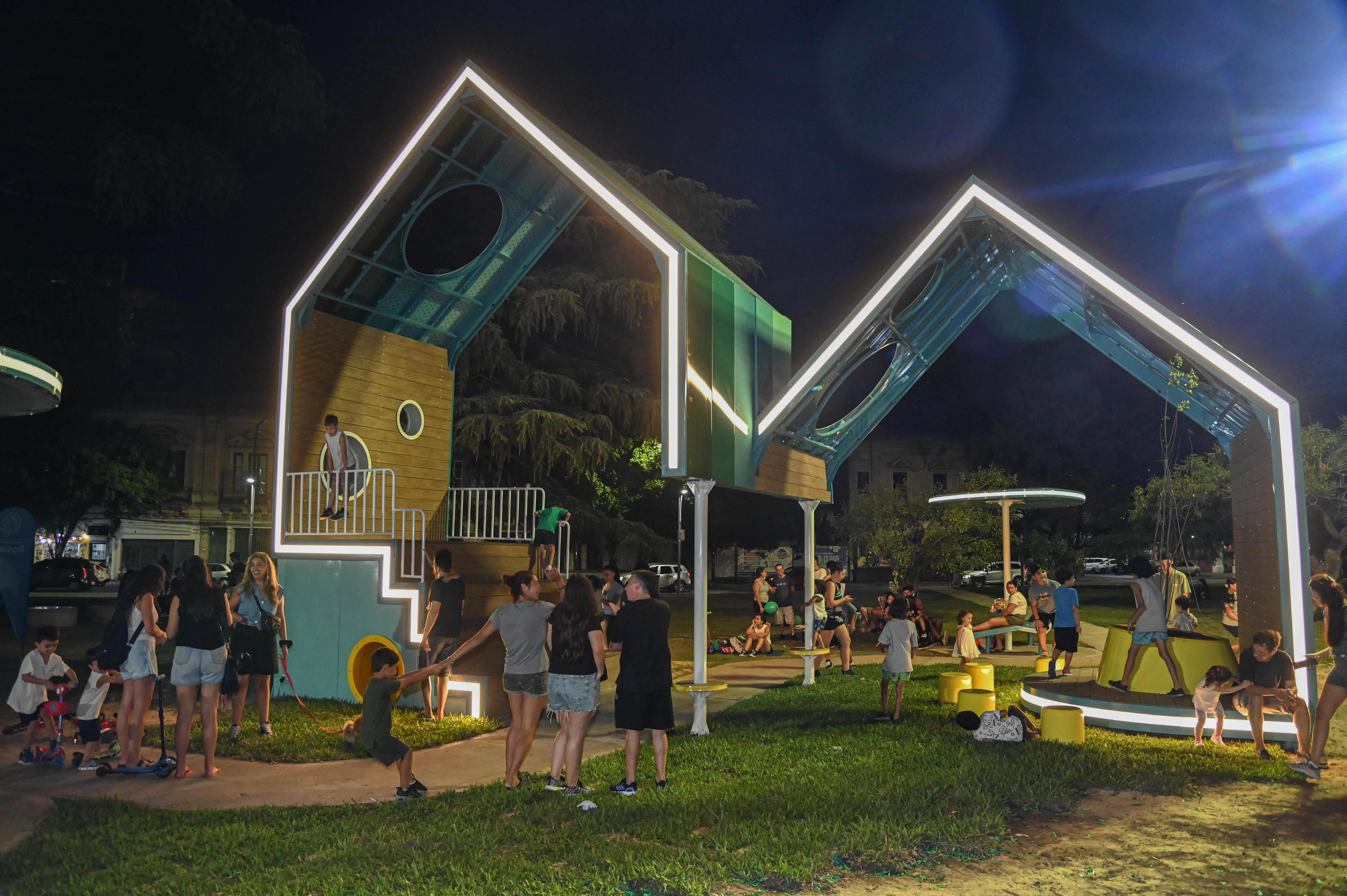 El nuevo dispositivo se suma a los grandes juegos urbanos en distintos parques y plazas de la ciudad, que se transformaron en atractivos centrales del espacio público y puntos de encuentro para las familias. Entre ellos se encuentran el juego temático del crucero ARA General Belgrano, ubicado en el Parque Nacional a la Bandera junto al Monumento a los Caídos en Malvinas, la gran estructura “El Ceibo” en plaza López (Pellegrini y Laprida), el juego “El Dorado” en el parque Scalabrini Ortiz (Bv. Argentino y Gualberto Venesia), la “Escalera Mágica” en plaza Buratovich (Cafferata y 3 de Febrero, barrio Echesortu) y el juego temático “La Canoa” en plaza Ovidio Lagos, en el distrito norte.